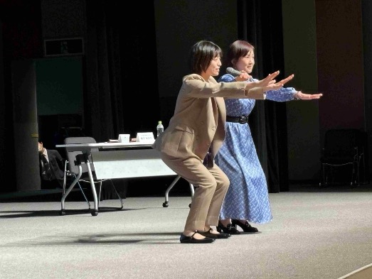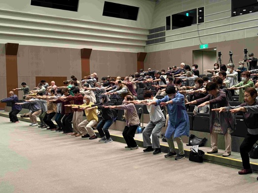 軽い負荷のトレーニングで急激に血圧を上げることなく筋力を上げるという『心臓リハビリテーション』の運動も教えていただき、会場の皆さんと体験しました。