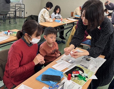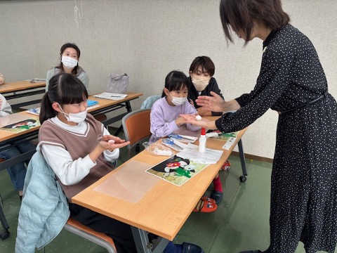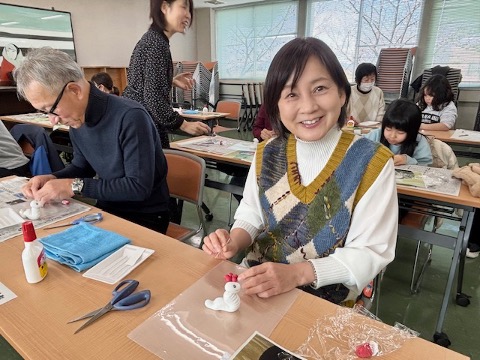 樹脂粘土を使って、まずはこねこね……乙川先生のご指導のもと、粘土を丸めたりのばしたりしながら思い思いに巳年の飾りを作りました。