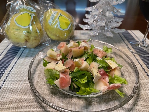 最近教えていただいたのですが、グリーンサラダに生ハムやカマンベールチーズまたはブルーチーズなどお好きなチーズを入れ、最後にル レクチエをちらし、塩とオリーブオイルでいただきます。