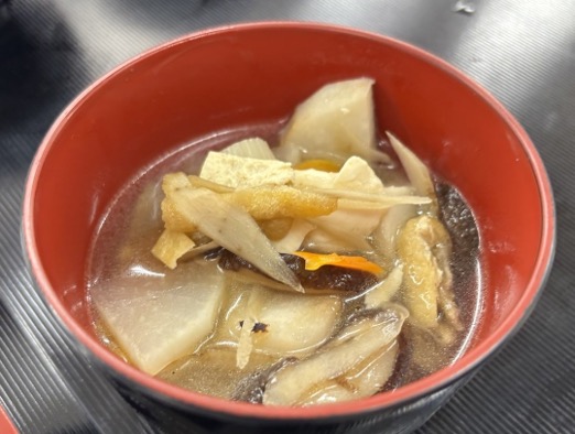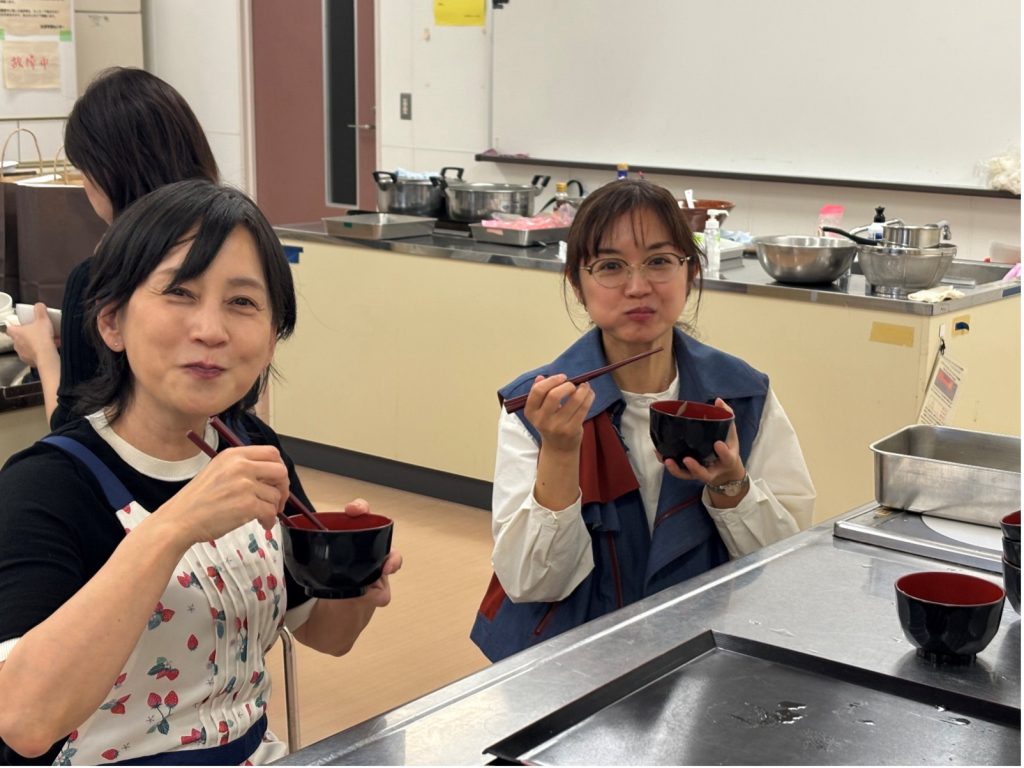 もう一品ご紹介いただいた「けんちん汁」は、おいしい新潟の秋の食材がたっぷりです。みどり先生にも加わっていただき、健康アドバイスをいただきました。けんちん汁は、もともと精進料理でお肉は入っていません。小野先生のレシピは、出汁がしっかりとってあり、また野菜の味も活きていて、とてもほっとする美味しい味でした。塩分は控えめに、仕上げに七味唐辛子を振りかけて味にスパイスをつけるのがおすすめということでした。