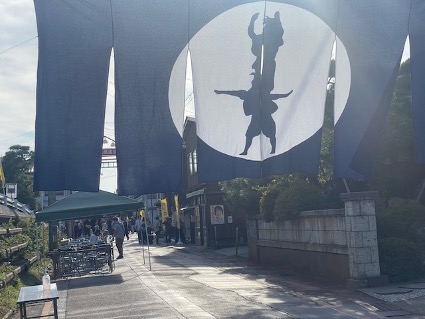 大道芸フェスティバルが開催されたこの日、月形商店街入口に大きな『唐子人形お馬乗り』の旗が!